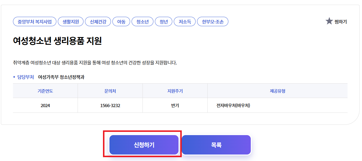 생리대 바우처 신청 방법은 다음과 같습니다.