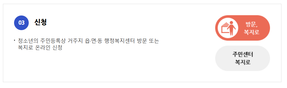 - 주민등록 주소지 관할 읍·면·동 주민센터 방문