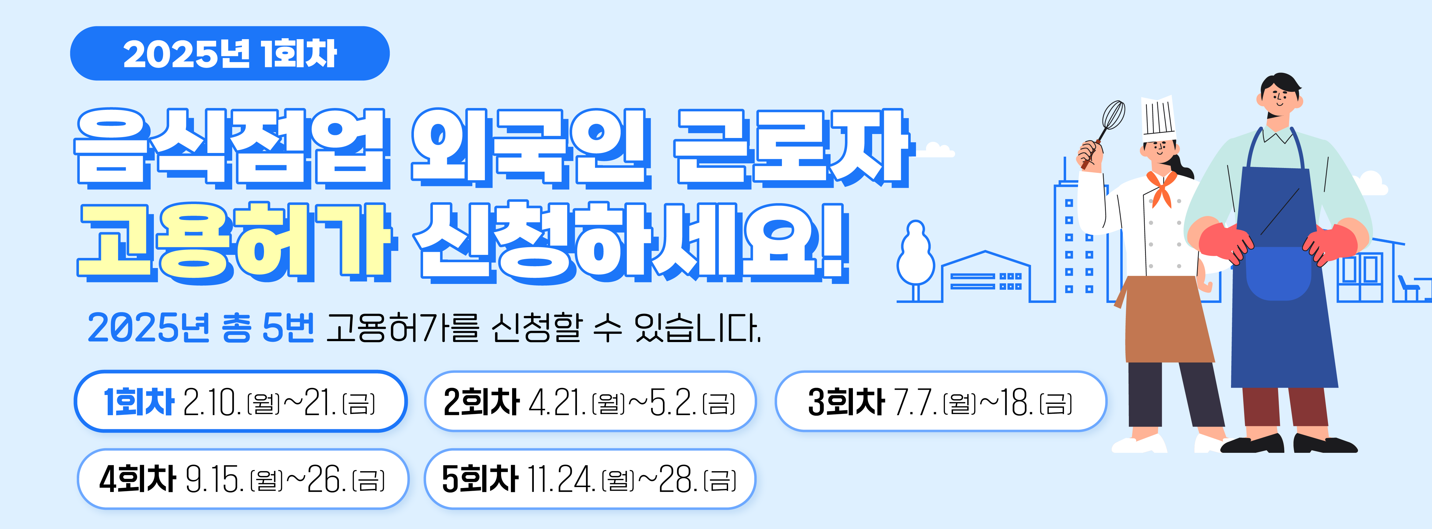 2025년에도 음식점업에서 외국인 근로자를 채용할 수 있는 기회가 열립니다. 인력 부족으로 고민하는 외식업 사장님들은 이번 기회를 놓치지 마세요!
