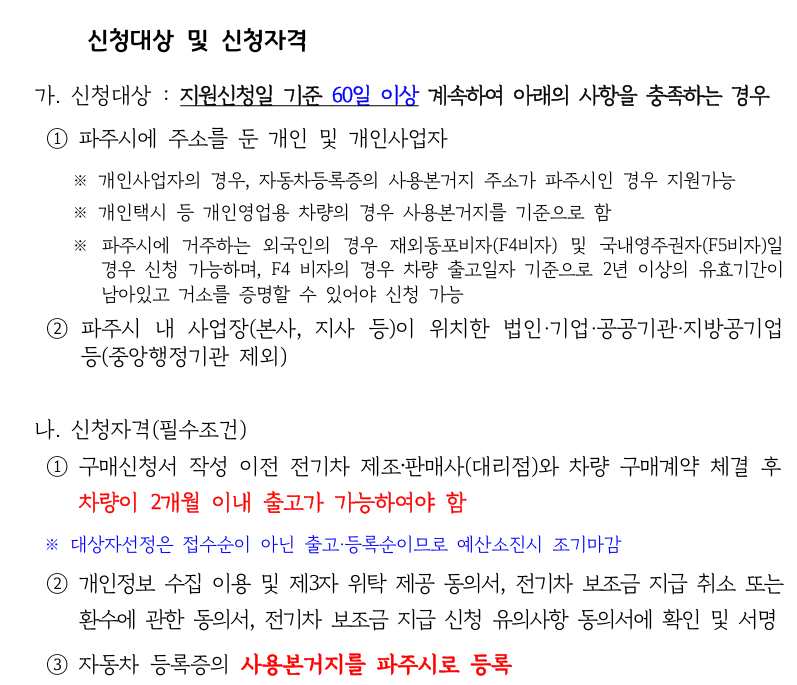 2025년 파주시 전기차 보급사업 안내: 전기차 구매 보조금 및 지원 대상